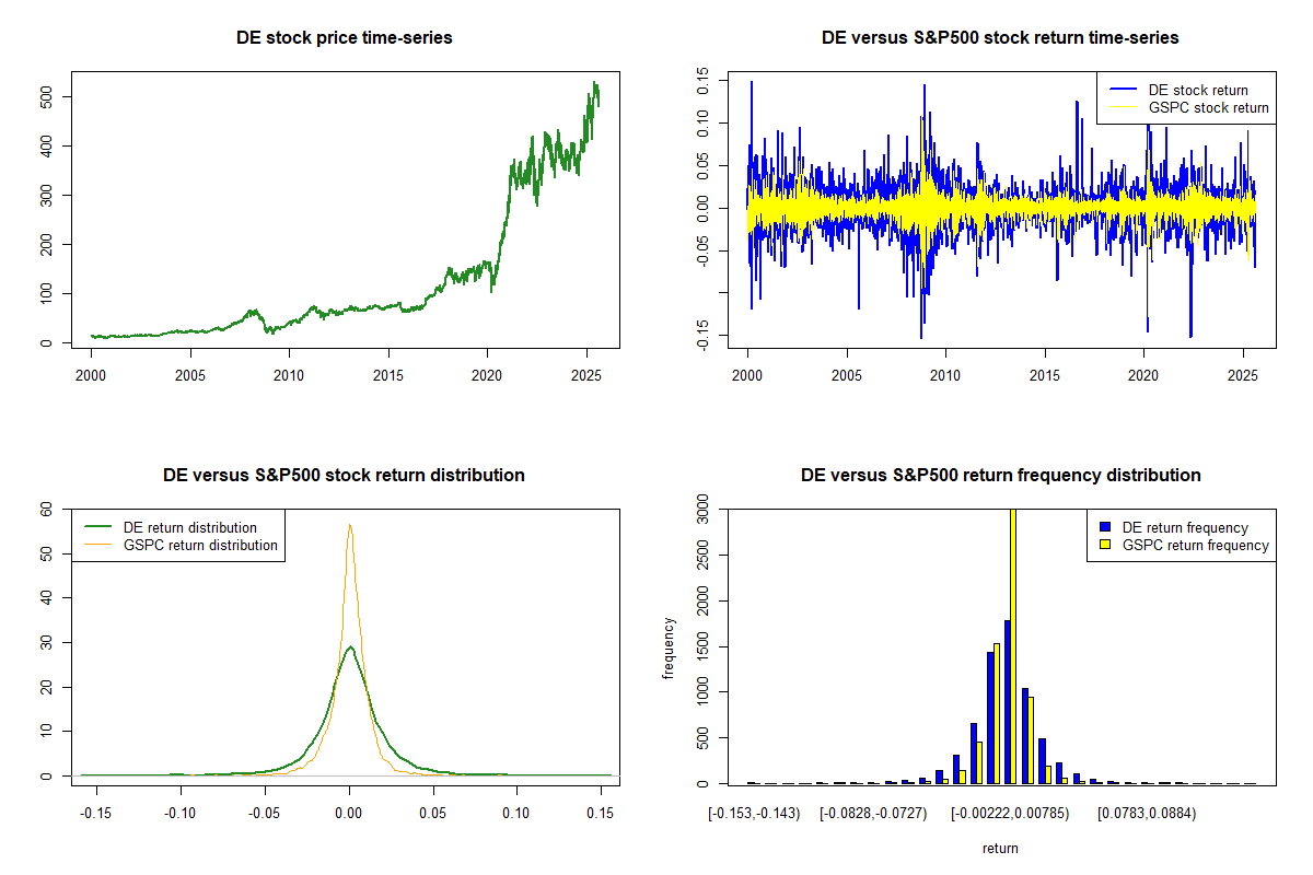 Deere is the world's largest producer of agricultural equipment, manufacturing agricultural machinery under the iconic John Deere brand with its signature green and yellow color scheme. Deere is focused on revolutionizing agriculture with technology, in an effort to make farming automated, easier and more precise across the production process. Agriculture and turf operations has been divided into two new segments: The Production and Precision Agriculture segment is responsible for defining, developing and delivering global equipment and technology solutions that cater to production-scale growers of large grains, small grains, cotton, and sugar. The Small Agriculture and Turf segment will deliver products to support mid-size and small growers and producers globally and turf customers. Deere also manufactures and distributes road building equipment through its wholly-owned subsidiaries of the Wirtgen Group....