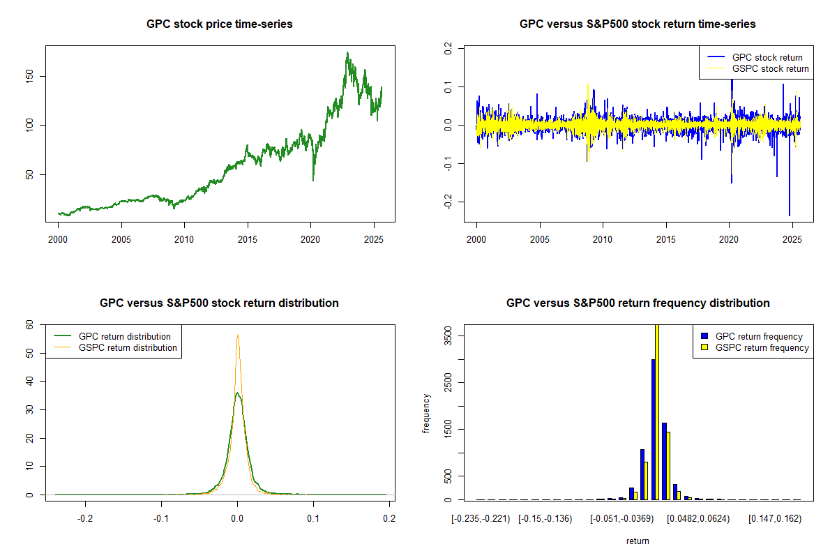 Genuine Parts distributes automotive and industrial replacement parts and materials. Genuine Parts operates through two segments: Automotive Parts and Industrial Parts. Automotive Parts Group segment's distribution centers provide replacement parts accessories and service items. Genuine Parts both the Retail and Commercial automotive aftermarket segments with products and services for substantially all domestic and foreign motor vehicle models. The Automotive Parts group comprises National Automotive Parts Association automotive parts distribution centers and stores. Genuine Parts both the Retail and Commercial automotive aftermarket segments with products and services for substantially all domestic and foreign motor vehicle models. Industrial Parts Group, operates as Motion Industries, Inc. segment provides industrial replacement parts and related supplies such as bearings, mechanical and electrical power transmission products, industrial automation, hose, hydraulic and pneumatic components....