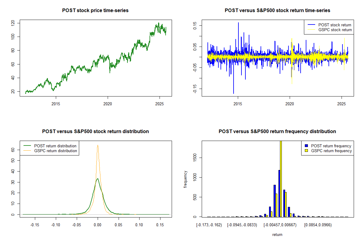 Post Holdings Inc. is a consumer-packaged goods holding company, which is involved in the production of center-of-the-store, refrigerated, foodservice, food ingredient and convenient nutrition product categories and the private brand food category. The company comprises five segments, including BellRing Brands, a separate entity. Post Consumer Brands consists private label ready-to-eat cereal products. Some notable brands of RTE include Honey Bunches of Oats, Pebbles, Oreo O's, Hostess Donettes, HostessHoney Bun, Great Grains, Grape-Nuts, Post Shredded Wheat, Oh's, Honeycomb, Golden Crisp, Post Raisin Bran, Alpha-Bits, Shreddies, Malt-O-Meal-branded bagged cereal and Mom's Best. Weetabix comprises businesses of Weetabix Limited and its direct subsidiaries. Foodservice engages in a wide portfolio of egg products under brands, including Papetti's and Abbotsford Farms, and potato products under several brands, including Simply Potatoes....